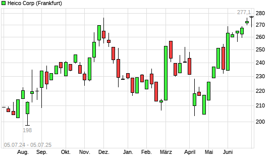 Mit dem Anstieg auf 276,60 EUR hat die HEICO-Aktie (ISIN US4228061093) am 04.07.2025 ein neues All-Time-High erreicht und damit den Kurs vom 30.06.2025 eingestellt.