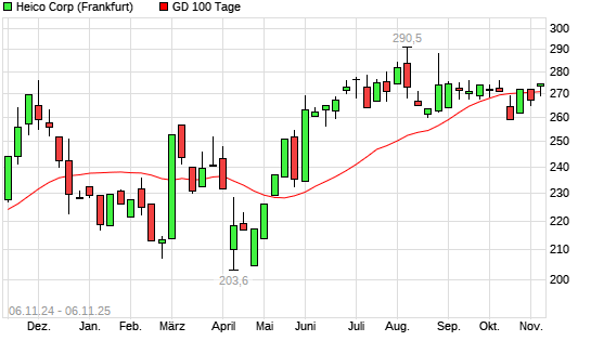 Mit dem Anstieg auf 272,90 EUR hat die HEICO-Aktie am 05.11.2025 die 100-Tage-Linie nach oben gekreuzt.
