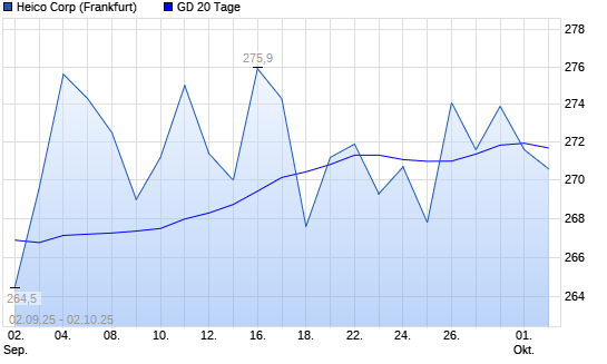 Mit dem Rücksetzer auf 271,60 EUR hat die HEICO-Aktie am 01.10.2025 die 20-Tage-Linie nach unten gekreuzt.