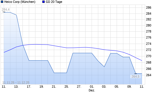Mit dem Rücksetzer auf 260,80 EUR hat die HEICO-Aktie am 10.12.2025 die 20-Tage-Linie nach unten gekreuzt.