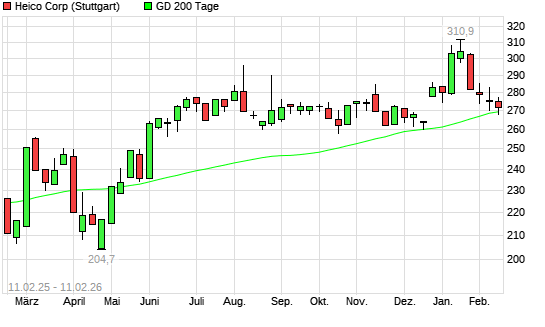 Mit dem Rücksetzer auf 268,70 EUR hat die HEICO-Aktie am 10.02.2026 die 200-Tage-Linie nach unten gekreuzt.