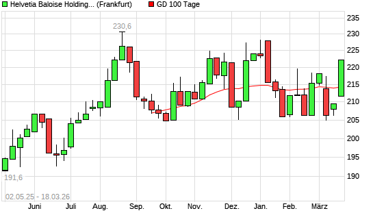 Mit dem Anstieg auf 220,20 EUR hat die HELVETIA HOLDING N1-Aktie am 17.03.2026 die 100-Tage-Linie nach oben gekreuzt.