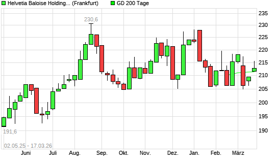 Mit dem Anstieg auf 214,00 EUR hat die HELVETIA HOLDING N1-Aktie am 16.03.2026 die 200-Tage-Linie nach oben gekreuzt.