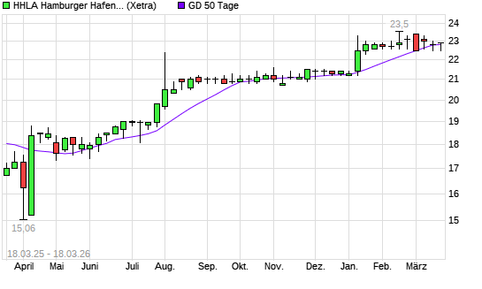 Mit dem Anstieg auf 22,80 EUR hat die HHLA-Aktie am 17.03.2026 die 50-Tage-Linie nach oben gekreuzt.