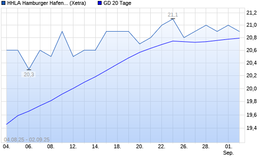 Mit dem Rücksetzer auf 20,70 EUR hat die HHLA-Aktie am 01.09.2025 die 20-Tage-Linie nach unten gekreuzt.