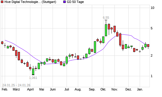 Mit dem Rücksetzer auf 2,59 EUR hat die HIVE Digital Technologies-Aktie am 23.01.2026 die 50-Tage-Linie nach unten gekreuzt.