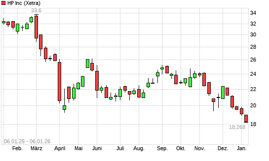 Mit dem Rücksetzer auf 18,54 EUR hat die HP-Aktie (ISIN US40434L1052) am 05.01.2026 ein neues 5-Jahres-Tief erreicht und damit den Kurs vom 02.01.2026 eingestellt.