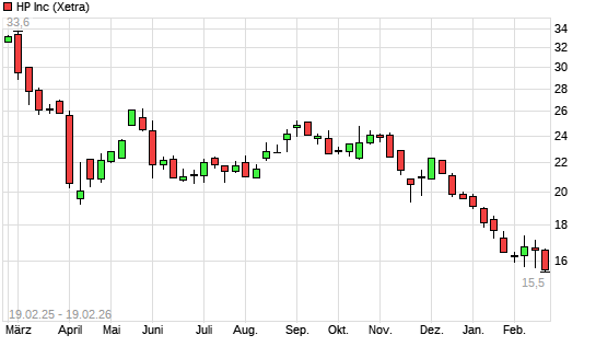 Mit dem Rücksetzer auf 15,57 EUR hat die HP-Aktie (ISIN US40434L1052) am 18.02.2026 ein neues 5-Jahres-Tief erreicht und damit den Kurs vom 17.02.2026 eingestellt.