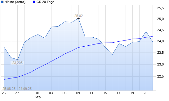 Mit dem Anstieg auf 24,37 EUR hat die HP-Aktie am 23.09.2025 die 20-Tage-Linie nach oben gekreuzt.
