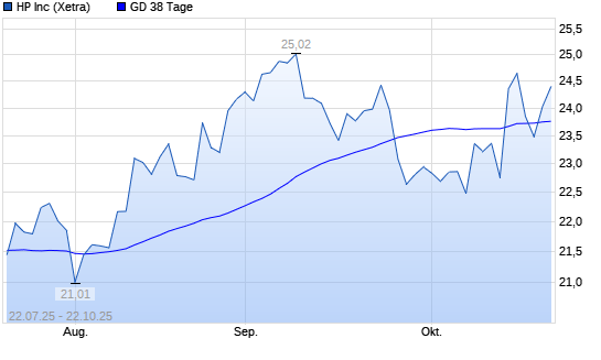Mit dem Rücksetzer auf 23,66 EUR hat die HP-Aktie am 21.10.2025 die 38-Tage-Linie nach unten gekreuzt.