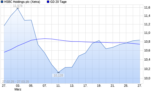 Mit dem Anstieg auf 10,84 EUR hat die HSBC Holdings-Aktie am 26.03.2025 die 20-Tage-Linie nach oben gekreuzt.