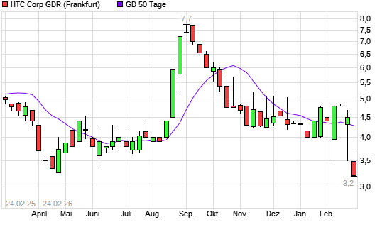 Mit dem Rücksetzer auf 3,74 EUR hat die HTC GDR-Aktie am 23.02.2026 die 50-Tage-Linie nach unten gekreuzt.