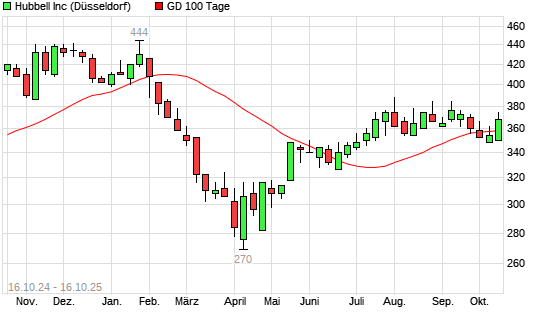 Mit dem Anstieg auf 366,00 EUR hat die HUBBELL-Aktie am 15.10.2025 die 100-Tage-Linie nach oben gekreuzt.