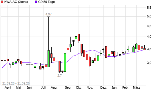 Mit dem Rücksetzer auf 3,28 EUR hat die HWA-Aktie am 20.03.2026 die 50-Tage-Linie nach unten gekreuzt.