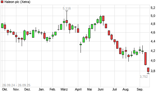 Mit dem Rücksetzer auf 3,75 EUR hat die Haleon-Aktie (ISIN GB00BMX86B70) am 25.09.2025 ein neues 12-Monats-Tief erreicht und damit den Kurs vom 24.09.2025 eingestellt.