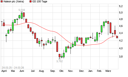Mit dem Rücksetzer auf 4,27 EUR hat die Haleon-Aktie am 23.03.2026 die 100-Tage-Linie nach unten gekreuzt.