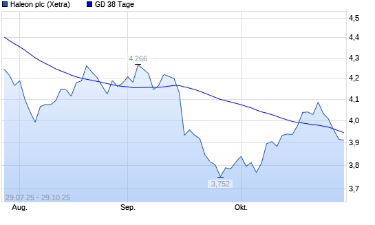 Mit dem Rücksetzer auf 3,90 EUR hat die Haleon-Aktie am 28.10.2025 die 38-Tage-Linie nach unten gekreuzt.