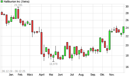 Mit dem Anstieg auf 24,22 EUR hat die Halliburton-Aktie (ISIN US4062161017) am 05.12.2025 ein neues 6-Monats-Hoch erreicht und damit den Kurs vom 12.11.2025 eingestellt.