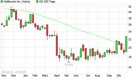 Mit dem Anstieg auf 22,77 EUR hat die Halliburton-Aktie am 22.10.2025 die 200-Tage-Linie nach oben gekreuzt.