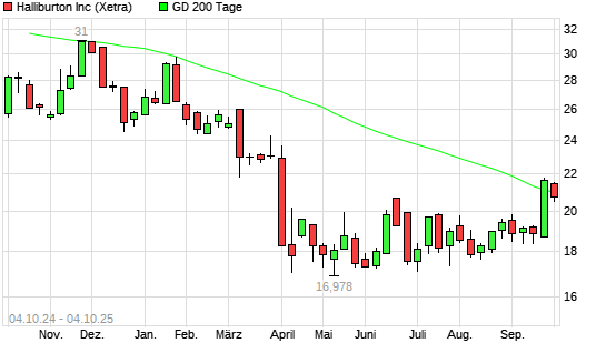 Mit dem Rücksetzer auf 20,76 EUR hat die Halliburton-Aktie am 03.10.2025 die 200-Tage-Linie nach unten gekreuzt.