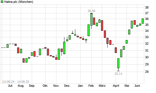 Mit dem Anstieg auf 37,42 EUR hat die Halma-Aktie (ISIN GB0004052071) am 13.06.2025 ein neues 3-Jahres-Hoch erreicht und damit den Kurs vom 30.01.2025 eingestellt.