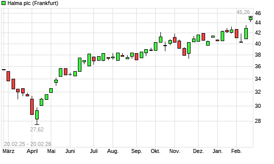Mit dem Anstieg auf 45,26 EUR hat die Halma-Aktie (ISIN GB0004052071) am 19.02.2026 ein neues All-Time-High erreicht und damit den Kurs vom 18.02.2026 eingestellt.