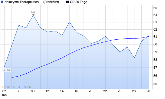 Mit dem Anstieg auf 61,18 EUR hat die Halozyme Therapeutics-Aktie am 30.01.2026 die 20-Tage-Linie nach oben gekreuzt.