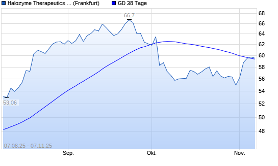Mit dem Anstieg auf 59,76 EUR hat die Halozyme Therapeutics-Aktie am 06.11.2025 die 38-Tage-Linie nach oben gekreuzt.