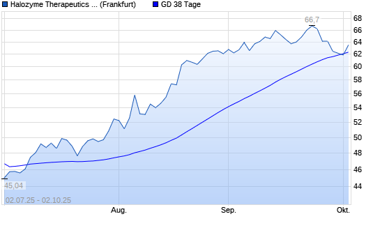 Mit dem Rücksetzer auf 61,88 EUR hat die Halozyme Therapeutics-Aktie am 01.10.2025 die 38-Tage-Linie nach unten gekreuzt.