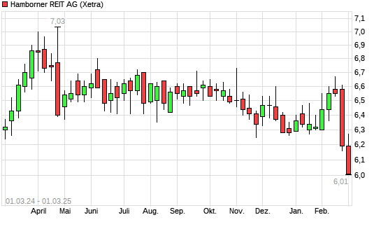 Mit dem Rücksetzer auf 6,04 EUR hat die Hamborner REIT-Aktie (ISIN DE000A3H2333) am 28.02.2025 ein neues 10-Jahres-Tief erreicht und damit den Kurs vom 26.10.2023 eingestellt.