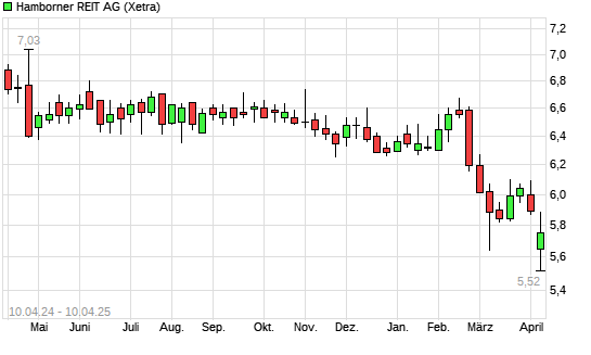 Mit dem Rücksetzer auf 5,55 EUR hat die Hamborner REIT-Aktie (ISIN DE000A3H2333) am 09.04.2025 ein neues 10-Jahres-Tief erreicht und damit den Kurs vom 07.04.2025 eingestellt.