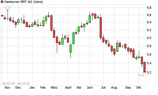 Mit dem Rücksetzer auf 5,23 EUR hat die Hamborner REIT-Aktie (ISIN DE000A3H2333) am 17.10.2025 ein neues 10-Jahres-Tief erreicht und damit den Kurs vom 15.10.2025 eingestellt.