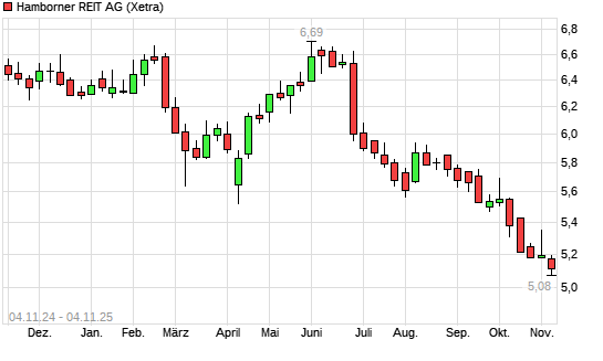 Mit dem Rücksetzer auf 5,13 EUR hat die Hamborner REIT-Aktie (ISIN DE000A3H2333) am 03.11.2025 ein neues 10-Jahres-Tief erreicht und damit den Kurs vom 31.10.2025 eingestellt.
