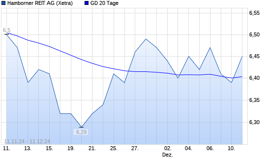 Mit dem Anstieg auf 6,39 EUR hat die Hamborner REIT-Aktie am 10.12.2024 die 20-Tage-Linie nach oben gekreuzt.