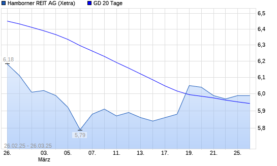Mit dem Anstieg auf 6,00 EUR hat die Hamborner REIT-Aktie am 25.03.2025 die 20-Tage-Linie nach oben gekreuzt.