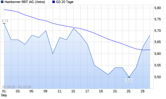 Mit dem Anstieg auf 5,67 EUR hat die Hamborner REIT-Aktie am 30.09.2025 die 20-Tage-Linie nach oben gekreuzt.