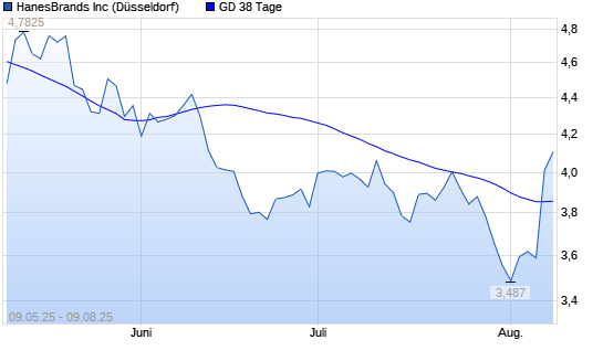 Mit dem Anstieg auf 3,95 EUR hat die Hanesbrands-Aktie am 08.08.2025 die 38-Tage-Linie nach oben gekreuzt.