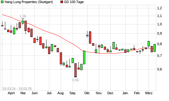 Mit dem Anstieg auf 0,79 EUR hat die Hang Lung Properties-Aktie am 14.03.2025 die 100-Tage-Linie nach oben gekreuzt.
