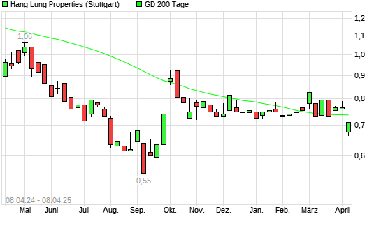 Mit dem Rücksetzer auf 0,64 EUR hat die Hang Lung Properties-Aktie am 07.04.2025 die 200-Tage-Linie nach unten gekreuzt.