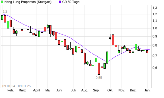 Mit dem Rücksetzer auf 0,74 EUR hat die Hang Lung Properties-Aktie am 08.01.2025 die 50-Tage-Linie nach unten gekreuzt.