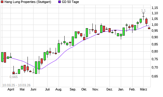 Mit dem Rücksetzer auf 0,97 EUR hat die Hang Lung Properties-Aktie am 09.03.2026 die 50-Tage-Linie nach unten gekreuzt.