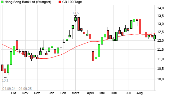 Mit dem Anstieg auf 12,60 EUR hat die Hang Seng Bank-Aktie am 03.09.2025 die 100-Tage-Linie nach oben gekreuzt.