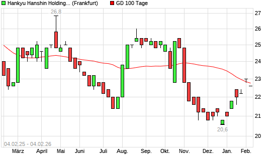 Mit dem Anstieg auf 22,60 EUR hat die Hankyu Hanshin Holdings-Aktie am 03.02.2026 die 100-Tage-Linie nach oben gekreuzt.