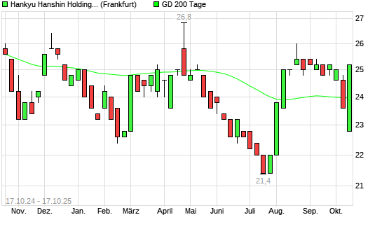 Mit dem Anstieg auf 25,20 EUR hat die Hankyu Hanshin Holdings-Aktie am 16.10.2025 die 200-Tage-Linie nach oben gekreuzt.