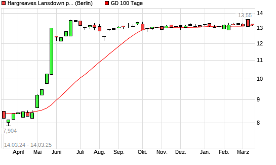 Mit dem Anstieg auf 13,13 EUR hat die Hargreaves Lansdown-Aktie am 13.03.2025 die 100-Tage-Linie nach oben gekreuzt.