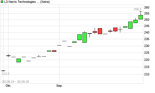 Mit dem Anstieg auf 253,90 EUR hat die Harris-Aktie (ISIN US5024311095) am 29.09.2025 ein neues 12-Monats-Hoch erreicht und damit den Kurs vom 13.11.2024 eingestellt.