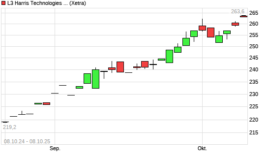 Mit dem Anstieg auf 261,30 EUR hat die Harris-Aktie (ISIN US5024311095) am 07.10.2025 ein neues All-Time-High erreicht und damit den Kurs vom 01.10.2025 eingestellt.