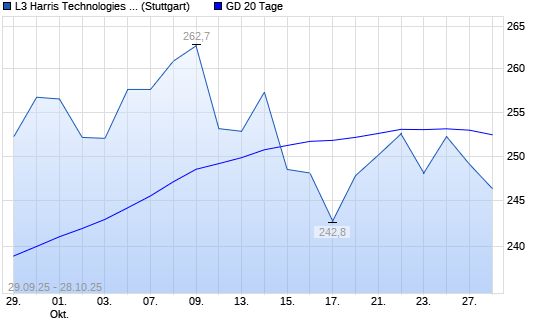 Mit dem Anstieg auf 252,60 EUR hat die Harris-Aktie am 27.10.2025 die 20-Tage-Linie nach oben gekreuzt.Die Harris-Aktie befindet sich seit dem 26.05.2025 im langfristigen Aufwärtstrend ...weiterlesen