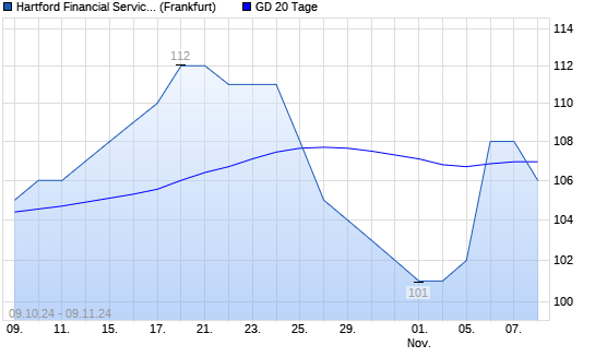 Mit dem Rücksetzer auf 106,00 EUR hat die Hartford Financial Services Group-Aktie am 08.11.2024 die 20-Tage-Linie nach unten gekreuzt.