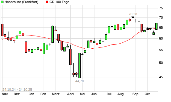 Mit dem Anstieg auf 66,00 EUR hat die Hasbro-Aktie am 23.10.2025 die 100-Tage-Linie nach oben gekreuzt.